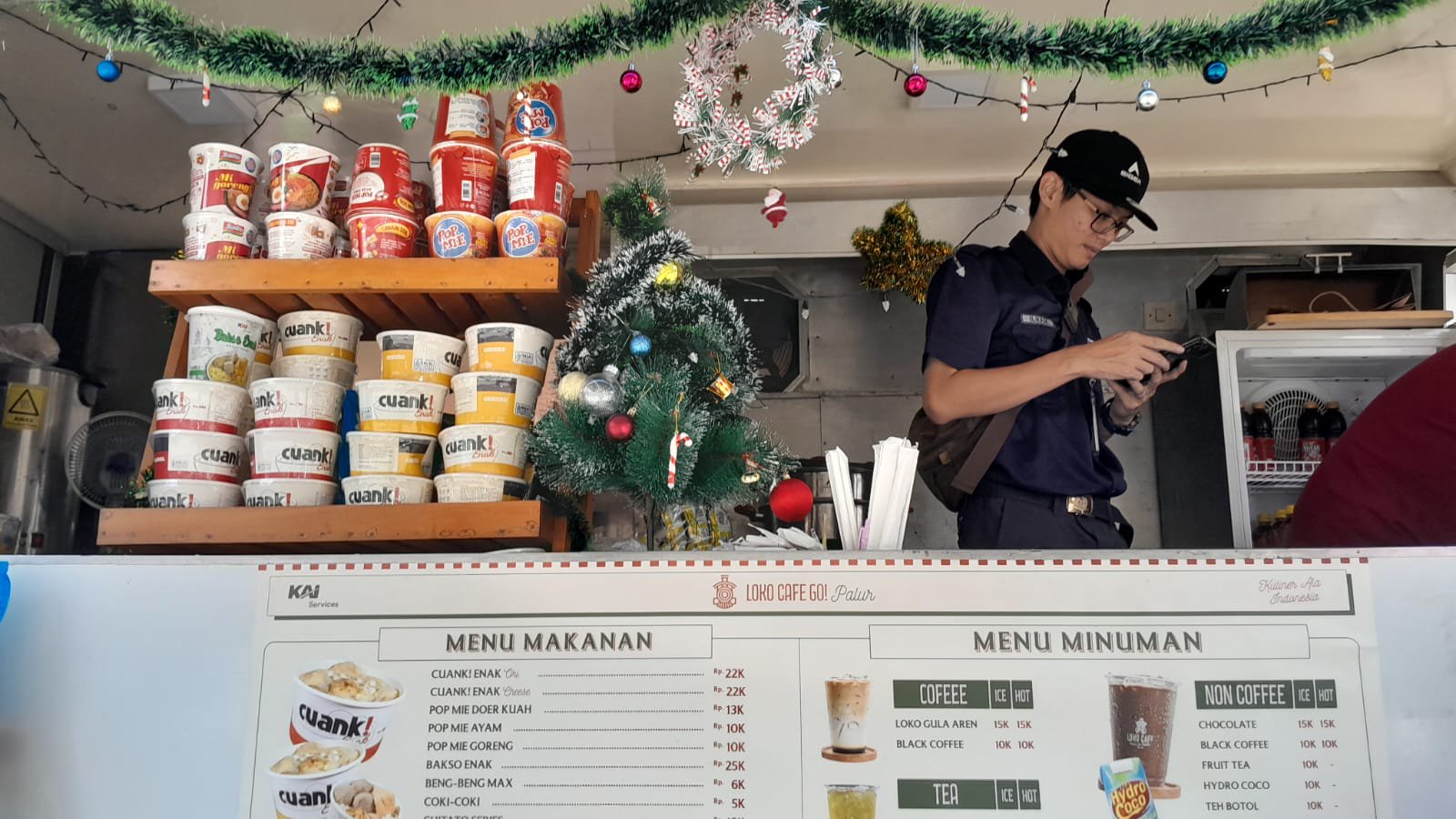 Jakarta, 28 Desember 2025 – Keberagaman menu snack dan minuman segar menjadi daya tarik utama food truck Loko Café di Stasiun Palur. KAI Services menghadirkan berbagai pilihan untuk memenuhi selera penumpang Kereta Commuter Line selama Nataru 2025/2026. Snack dalam berbagai varian tersedia untuk dibawa sebagai bekal perjalanan. Minuman segar seperti Loko Gula Aren siap menghilangkan dahaga pengunjung yang transit di stasiun.