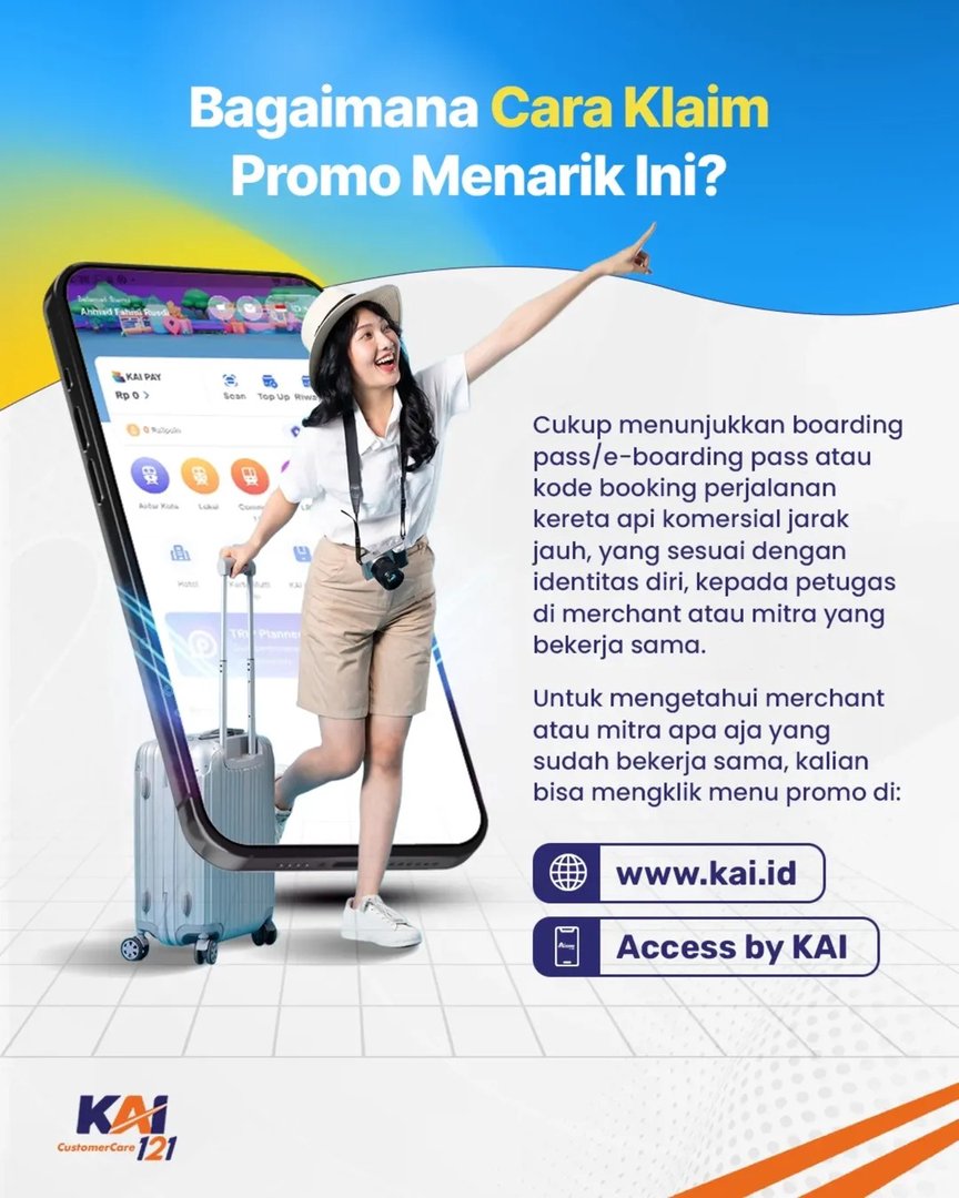 Pelanggan dapat memanfaatkan program ini dengan mudah, cukup menunjukkan boarding pass yang masih berlaku serta identitas diri yang sesuai di lokasi merchant. Informasi terkait daftar mitra dan promo dapat diakses di www.kai.id atau pada aplikasi Access by KAI.