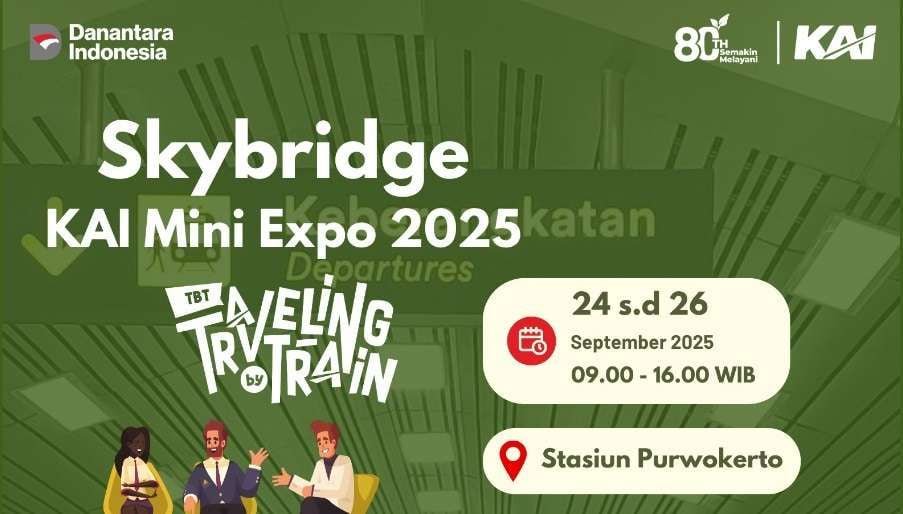 Purwokerto, 24 September 2025 – Rangkaian HUT ke-80 PT Kereta Api Indonesia (KAI) diwarnai dengan digelarnya Skybridge Mini Expo di Stasiun Purwokerto. Tidak hanya menghadirkan promo tiket diskon hingga 30 persen, acara ini juga menawarkan layanan kesehatan gratis serta berbagai kegiatan menarik lainnya.