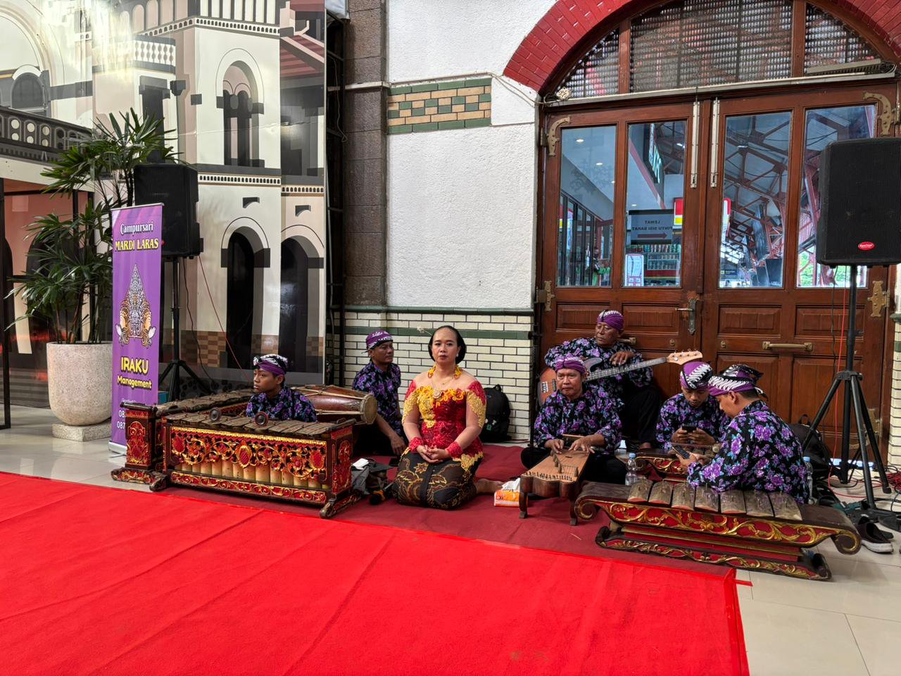 Pertunjukan musik gamelan yang mengalun syahdu menjadi pelengkap sempurna untuk fashion show busana batik karya Wastra Batik. Alunan gamelan tidak hanya menjadi pengiring fashion show, tetapi juga menghadirkan pengalaman berbeda bagi para penumpang yang sedang menunggu keberangkatan, seolah membawa mereka menyelami akar budaya Nusantara di tengah perjalanan modern dengan kereta api. Harmoni antara musik tradisional dan visual busana batik menciptakan pengalaman budaya yang menyeluruh dan mendalam bagi penonton.