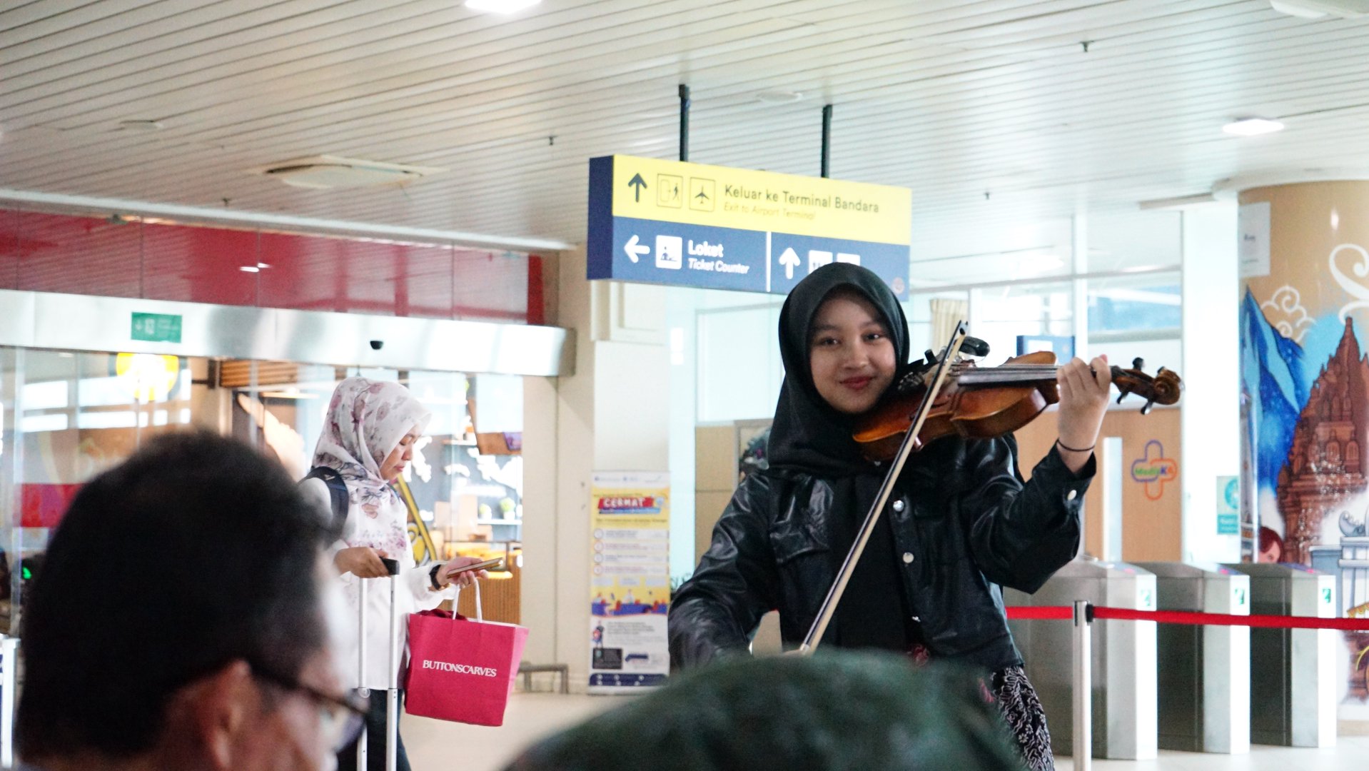 Musisi muda lokal tampil langsung memainkan violin di area stasiun dan ruang tunggu penumpang, menghadirkan alunan musik yang menenangkan di tengah kesibukan aktivitas keberangkatan dan kedatangan. Kehadiran pertunjukan ini memberikan sentuhan seni yang hangat dan menciptakan suasana yang lebih menyenangkan bagi para pengguna jasa kereta api bandara.