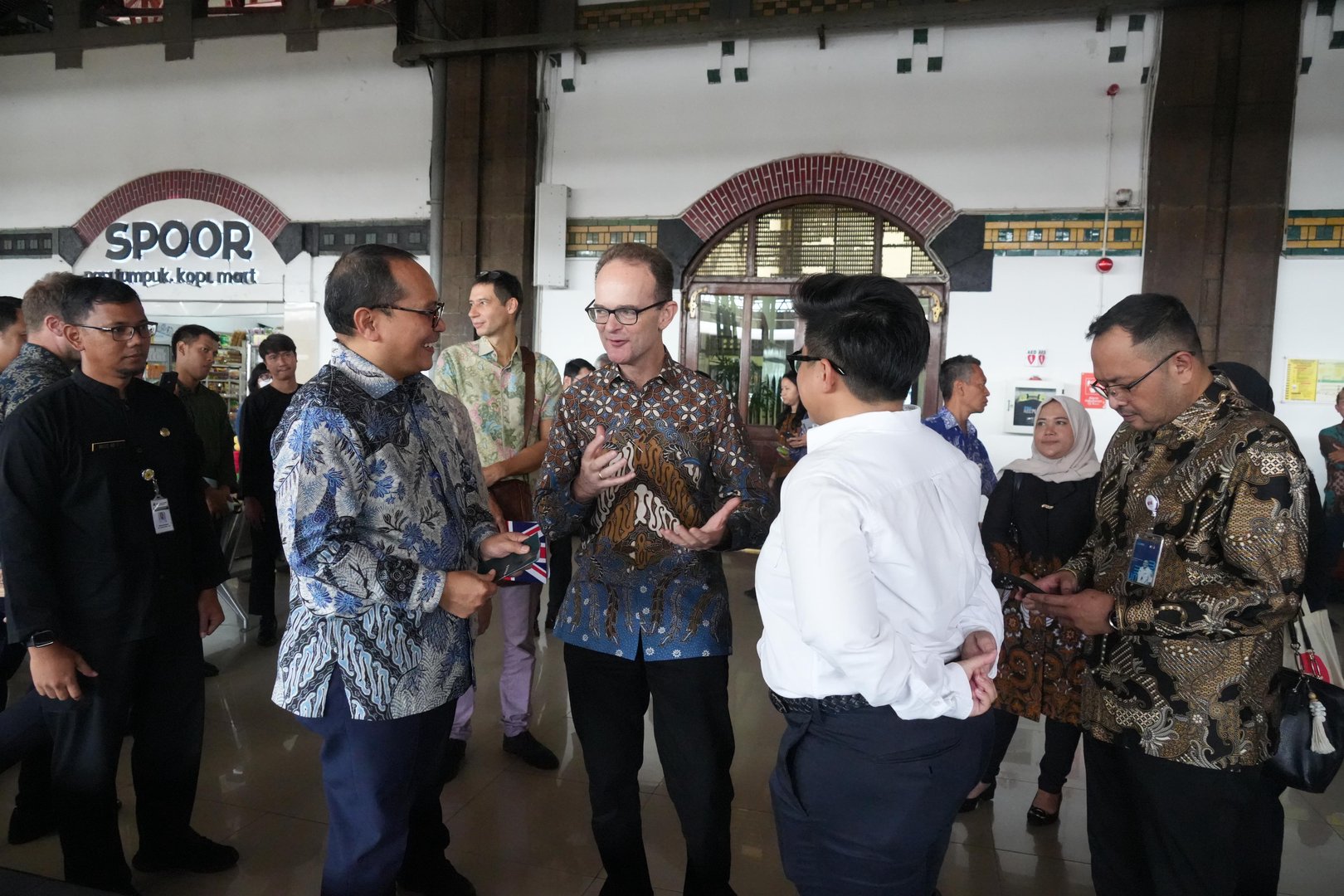Kunjungan Duta Besar Inggris untuk Indonesia, Dominic Jermey, ke Stasiun Semarang Tawang pada Kamis (23/10), menjadi momentum penting untuk meninjau perkembangan kolaborasi dan melihat langsung potensi integrasi antara sistem perkeretaapian dan pengembangan kawasan heritage Kota Lama Semarang. Dalam kegiatan walking tour, Duta Besar Inggris menyoroti pentingnya membangun keterhubungan antara sistem transportasi publik dan pengembangan kawasan yang memiliki nilai ekonomi, sosial, dan budaya tinggi.