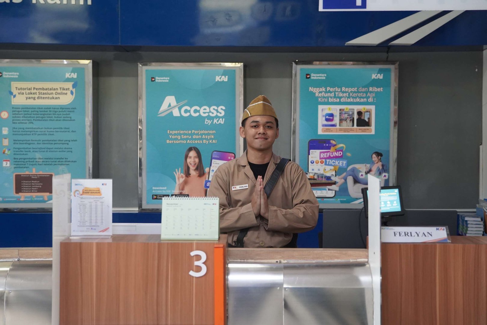 Petugas Ticket Officer dan Customer Service on Station tampil berbeda dari hari-hari biasanya. Mereka mengenakan busana yang mengingatkan pada pejuang-pejuang kemerdekaan, menciptakan suasana historis di tengah modernitas layanan transportasi. Penampilan ini bukan sekadar atribut visual, tetapi juga simbol komitmen untuk melanjutkan semangat pengabdian yang diwariskan oleh para pahlawan dalam konteks pelayanan publik masa kini.