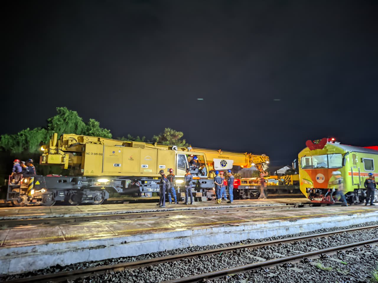 Dua kereta yang mengalami anjlokan berhasil dievakuasi dan ditempatkan kembali di atas rel. Dalam proses evakuasi tersebut, KAI mengerahkan dua unit crane dari Bandung dan Cirebon serta satu rangkaian kereta penolong dari Cipinang untuk mendukung percepatan penanganan di lapangan.