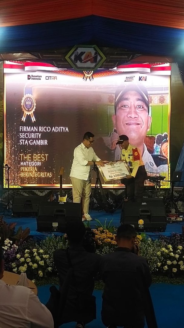 Jakarta, 11 November 2025 – PT Reska Multi Usaha (KAI Services) kembali membuktikan komitmennya dalam membangun budaya kerja yang berintegritas melalui pemberian penghargaan kepada petugas keamanan yang berdedikasi tinggi. Firman Rico Aditya, petugas Satuan Keamanan di Stasiun Gambir, menerima apresiasi khusus karena telah menemukan dan mengembalikan tas berisi emas serta dompet dengan nilai total mencapai Rp130 juta. Barang berharga tersebut tertinggal oleh penumpang Kereta Api Argo Bromo Anggrek. Penyerahan penghargaan dilakukan dalam acara Rapat Kerja yang berlangsung di Malang pada 5 sampai 7 November 2025.