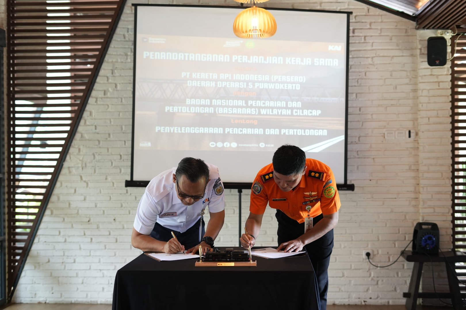 Jakarta, 25 November 2025 – Komitmen PT Kereta Api Indonesia Daop 5 Purwokerto dalam menjaga keselamatan transportasi publik ditegaskan melalui kerja sama resmi dengan Badan Nasional Pencarian dan Pertolongan Cilacap yang diresmikan pada Selasa di Purwokerto. Penandatanganan perjanjian yang dilakukan oleh Wakil Presiden Direksi Daop 5 Purwokerto, Mohamad Arie Fathurrochman, dan Kepala Kantor Pencarian dan Pertolongan Cilacap, Muhammad Abdullah, menandai langkah strategis dalam penguatan sistem tanggap darurat di wilayah operasional kereta api. Pelaksana Harian Manager Humas Daop 5 Purwokerto, Imanuel Setya Budi, menegaskan bahwa sinergi antara KAI dan Basarnas merupakan langkah strategis dalam memperkuat keselamatan layanan transportasi massal, dengan harapan bahwa respons terhadap kondisi darurat dapat lebih cepat, terukur, dan sesuai standar penanganan nasional. KAI berharap kolaborasi ini memberi dampak jangka panjang terhadap peningkatan keselamatan dan keamanan perjalanan di seluruh wilayah Daop 5 Purwokerto, terutama melalui program pelatihan dan simulasi keadaan darurat yang akan melibatkan personel dari kedua instansi agar mampu bertindak lebih efektif, seragam, dan terarah saat menghadapi situasi mendesak di lapangan.